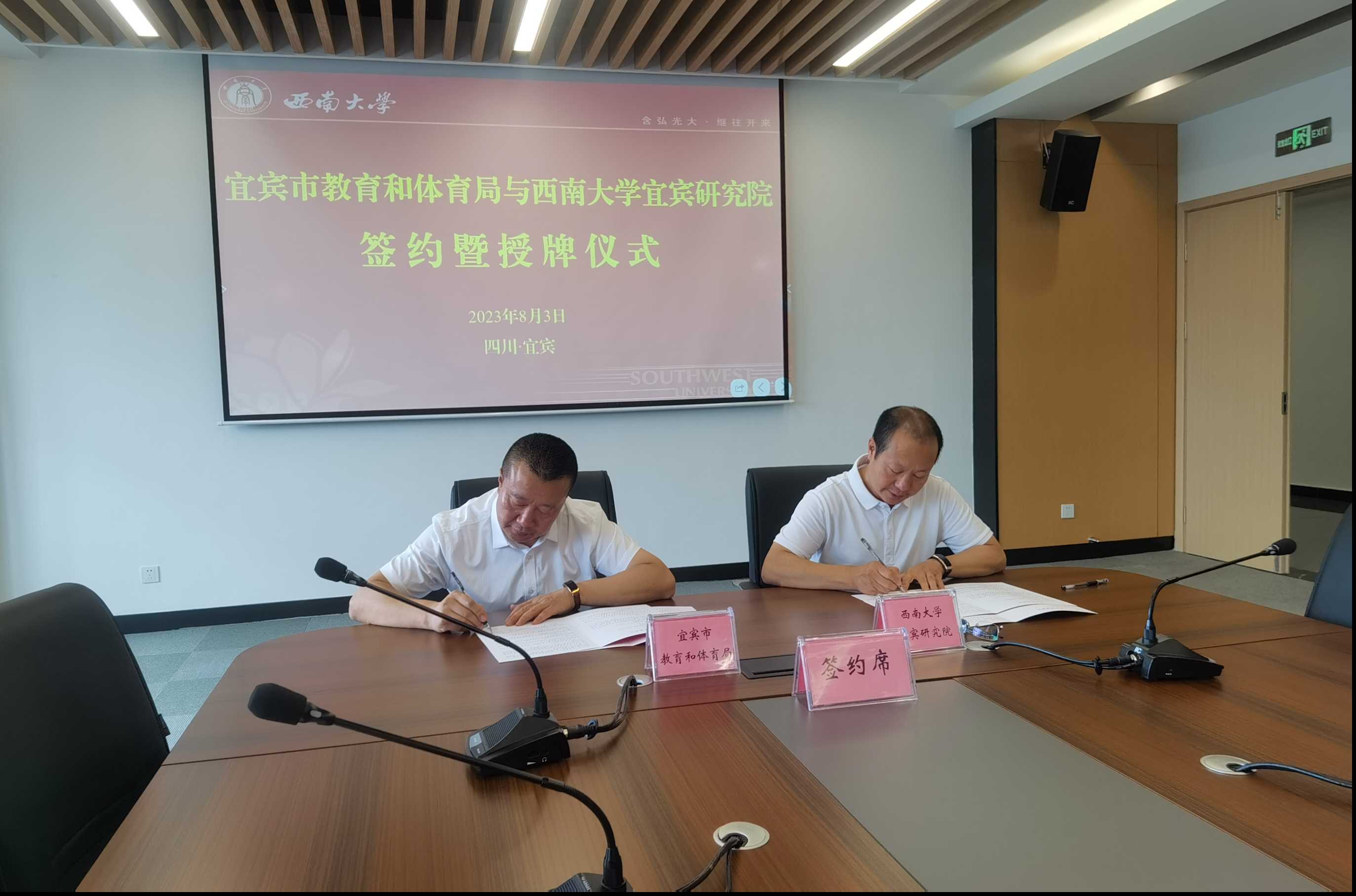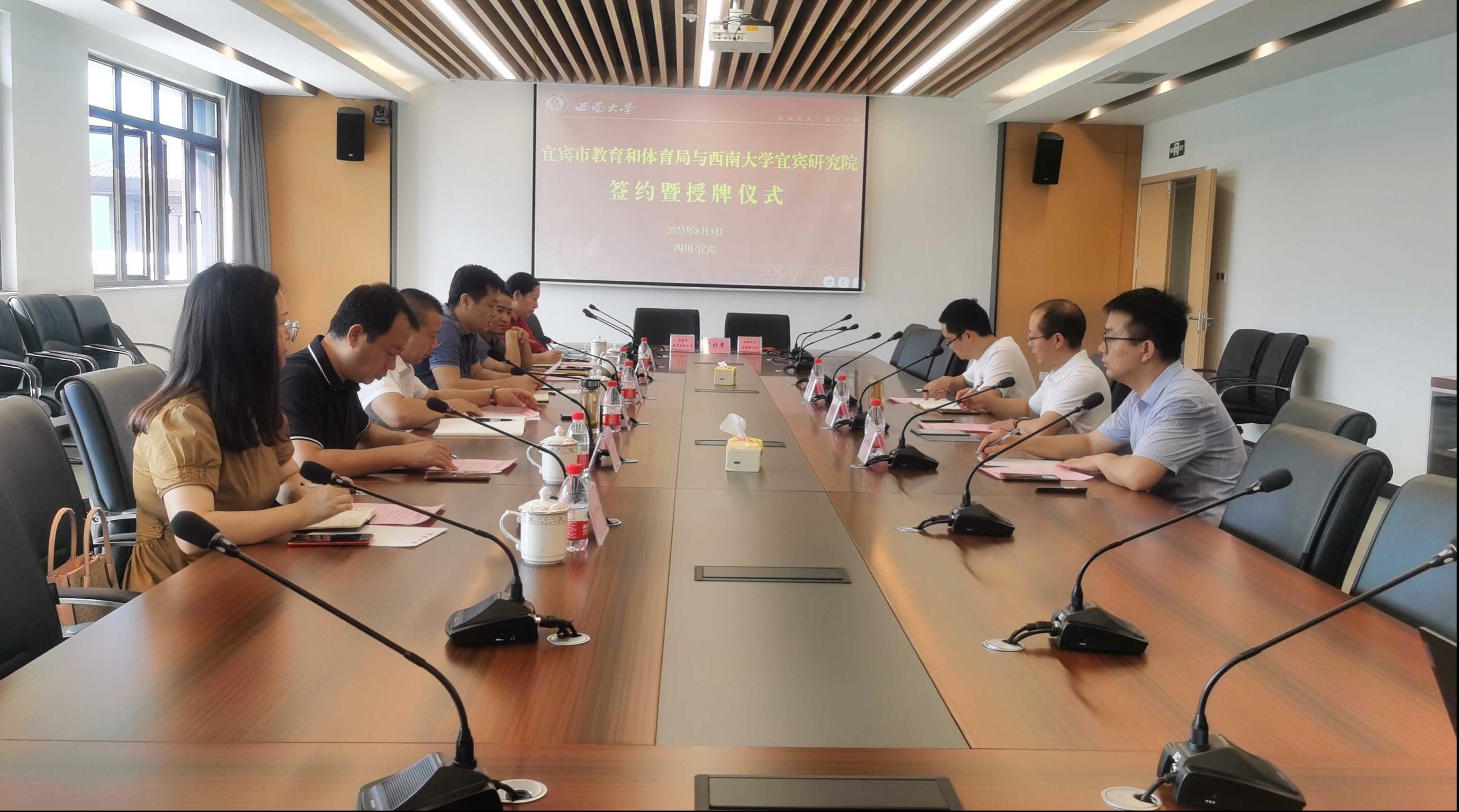 为加强川渝校地合作,推进宜宾基础教育高质量发展,8月3日,宜宾市教育和体育局与Betway必威西汉姆联官方网站宜宾研究院举行校地合作签约暨授牌仪式。宜宾市教育和体育局党组书记、局长田贵荣,Betway必威西汉姆联官方网站宜宾研究院直属党支部书记、院长陈金凤参加仪式,宜宾市委教育工委副书记伍绍彬主持会议。