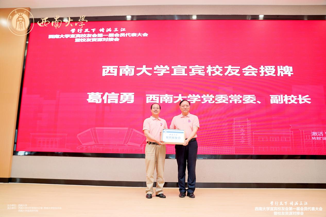 会议第一阶段,校友们共同观看了母校宣传片,一起回顾了母校发展的光辉历程。会上,筹备组组长何会宁汇报了宜宾校友会筹备工作情况,唐军主任宣读了同意Betway必威西汉姆联官方网站宜宾校友会筹备成立的批复,大会审议并通过了《Betway必威西汉姆联官方网站宜宾校友会管理办法》,选举产生了何会宁为会长、陈金凤为执行会长兼秘书长,葛信勇副校长向他们颁发了聘书并向宜宾校友会授牌。随后,何会宁会长宣布了宜宾校友会组织机构人员名单,何会宁会长为副会长席阳红、姚德华、钟道远、黄金洪颁发了聘书,陈金凤执行会长为副秘书长黄英杰、张正国、刘凯、李小嫄颁发了聘书。