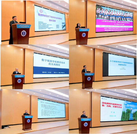 会议第二阶段深化新时代教育评价改革学术研讨会由陈金凤院长主持。重庆巴蜀中学校总督学、渝中区教师进修学院副院长周刘波,重庆玉带山小学校校长、教育部双名工程名校长入选者邹红,Betway必威西汉姆联官方网站附属小学副校长张文超,四川省教育科学院党政办副主任、中小学高级教师、Betway必威西汉姆联官方网站教育博士丰文林,四川省中小学后勤协会中学分会理事长、成都七中副校长、龙泉驿区东安湖学校党委书记胡勇以及学校教师教育学院邓磊教授,分别进行了主题报告,分享他们在教育评价改革方面的最新研究成果与实践经验。他们独到的学术视角和前沿实践创新探索的分享,开阔视野,激发与会者的思考和交流。