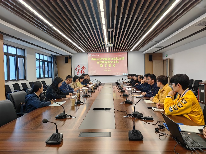 党政办公室党支部、宜宾研究院党支部开展理论学习研讨。政策研究室副主任毛王芳领学了党的四中全会精神,与会人员围绕学习内容,进行了深入交流和研讨。大家一致认为,必须坚持用党的创新理论武装头脑、指导实践、推动工作,将学习成果转化为服务学校事业高质量发展的具体行动。宜宾研究院党支部书记陈金凤作总结讲话。研讨结束后,全体成员参观了宜宾研究院,详细了解了研究院的建设进展、产学研合作及服务地方经济社会发展的情况。